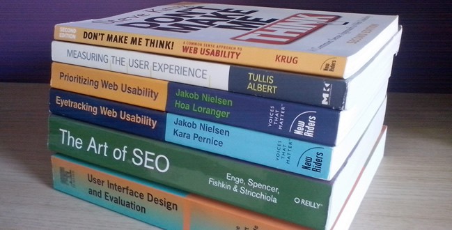 Da dove dovrebbe cominciare uno? Mi piace sempre la prospettiva tradizionale e consiglio un buon libro introduttivo dato che questo dà una buona visione d’insieme dell’area d’interesse ed è ideale per porre delle solide basi su cui costruire ulteriore conoscenza. Cio sono ovviamente molti buoni libri sia per l’usabilità sia per il SEO.